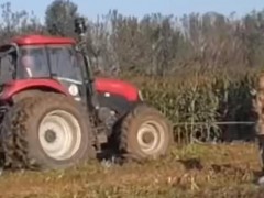 收玉米農機總趴窩 京郊種植戶用拖拉機拽著下地搶農時